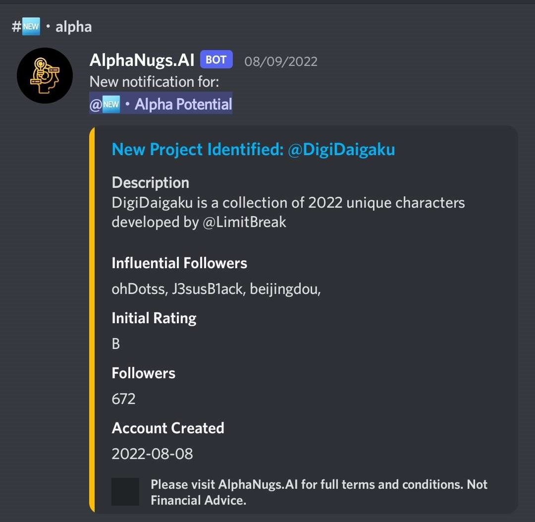 Below we share some of the projects we found super early that turned a profit for our users. We were previously branded under, Alpha Nugs AI, so you will find many pictures carrying that name.&#x20;