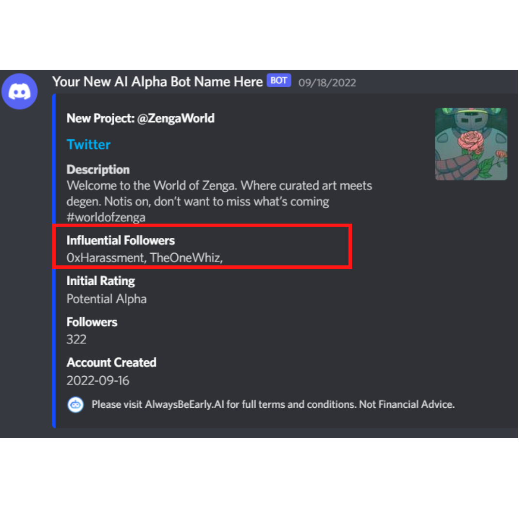 Our focus is on providing our users with Alpha before Alpha. Our software is linked to Twitter API and is tracking it daily to build up our database. By this, we are able to track the daily, weekly, and monthly growth of each project account and much more.